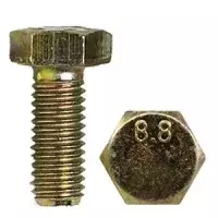USOS/APLICACIONES: Los bulones cabeza hexagonal de acero en 8.8 tienen rosca métrica y se utilizan en general para aplicaciones industriales, automotrices, construcción de puentes, torres y estructuras, etc. Los bulones cabeza hexagonal rosca fina se recomienda utilizar en aplicaciones donde exista movimiento y vibración. Este tipo de bulón se reconoce mirando su cabeza, la cual lleva marcado la calidad 8.8 que indica los grados de dureza del perno.