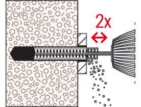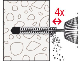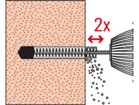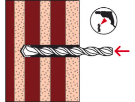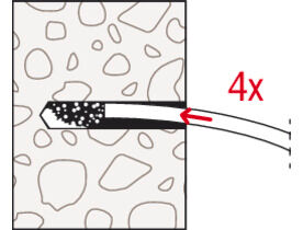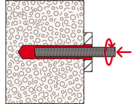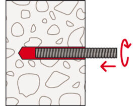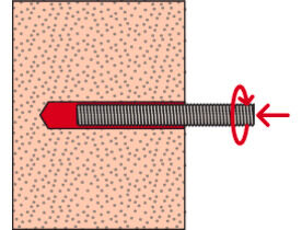 - El mortero pega el elemento de fijación en toda la superficie con la pared de la perforación y tapa la perforación.